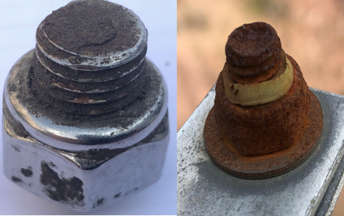 尼龍防松螺母正常安裝圖 尼龍防松螺母脹圈引發(fā)生銹圖